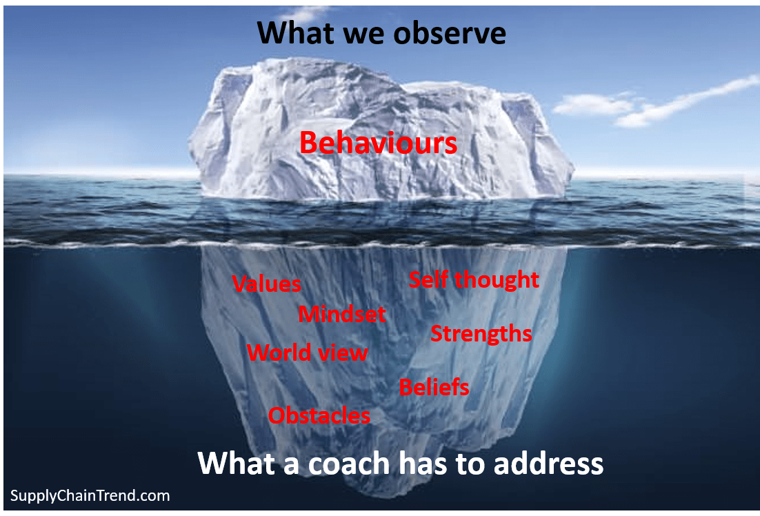Once a strong foundation of trust and communication is developed and many senior S&OP stakeholders have improved communication and display trust behaviours, the next phase is to coach for excellence. Coaching for excellence requires to go under the surface of the iceberg to help individuals develop more effective mindset, self-thoughts and behaviours. The objective is to improve the mindset and reduce individual and group obstacles that hold back effective behaviours and performance.