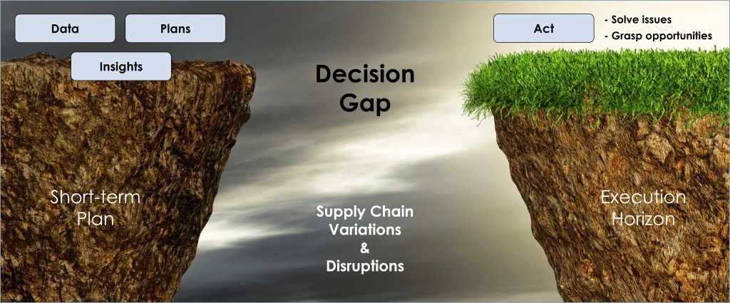 Every supply chain plan or schedule meets variations or disruptions that require corrective decisions and actions. However, a gap remains between data, plans, insights and taking action to solve short and long term issues and grasp opportunities.