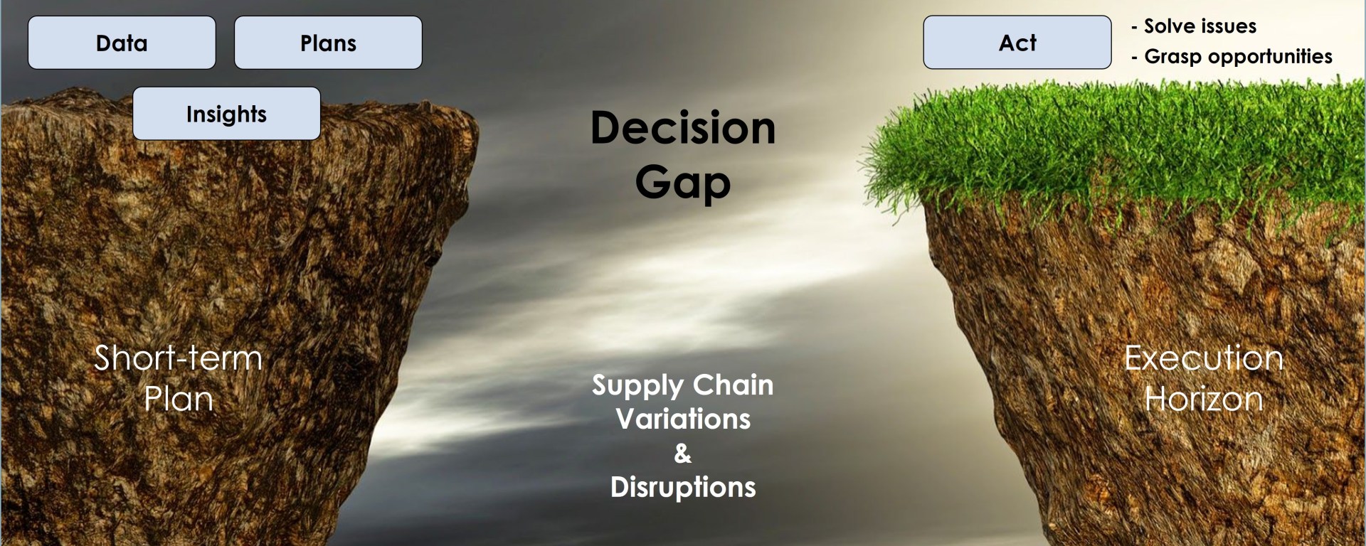 Every supply chain plan or schedule meets variations or disruptions that require corrective decisions and actions. However, a gap remains between data, plans, insights and taking action to solve short and long term issues and grasp opportunities.