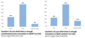 A lack of IBP process and system innovation was definitely the feedback I got in my 2015 and 2017 S&OP Pulse Check, where 64% of respondents thought there wasn’t enough IBP process innovation and 62% thought there wasn’t enough system innovation.